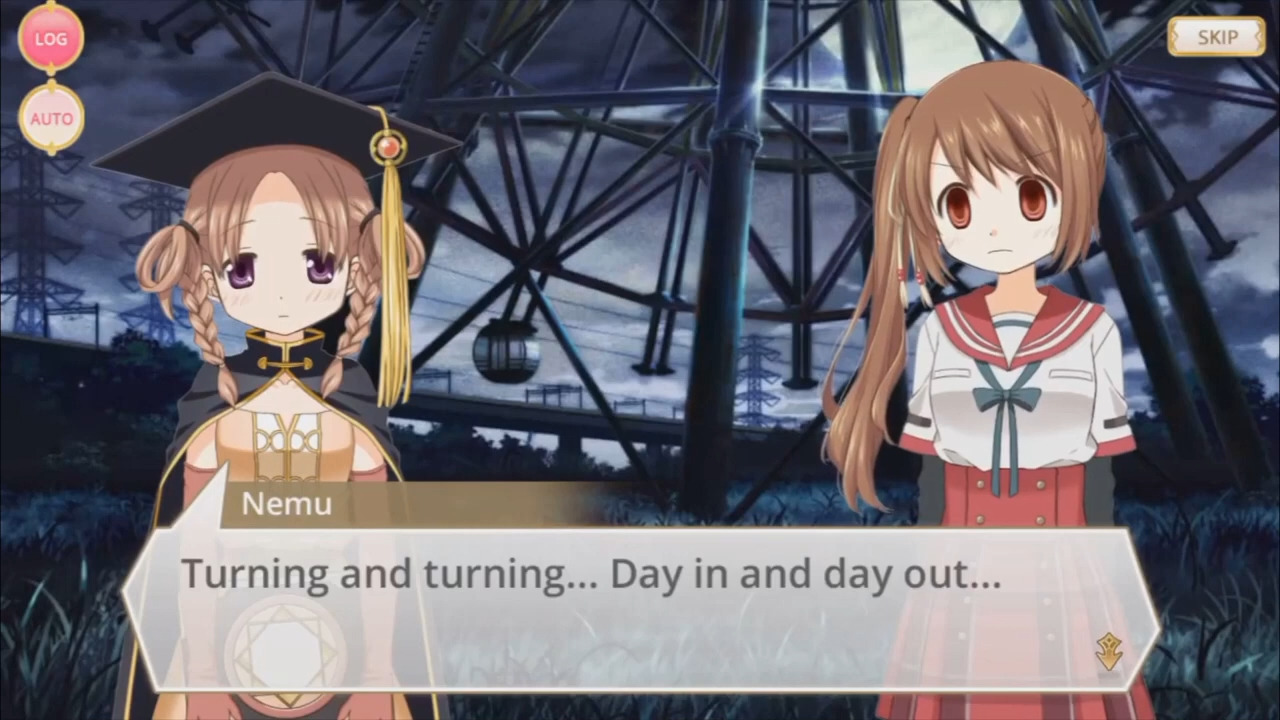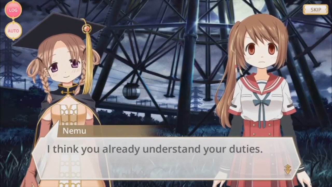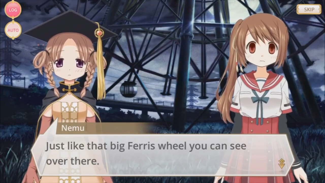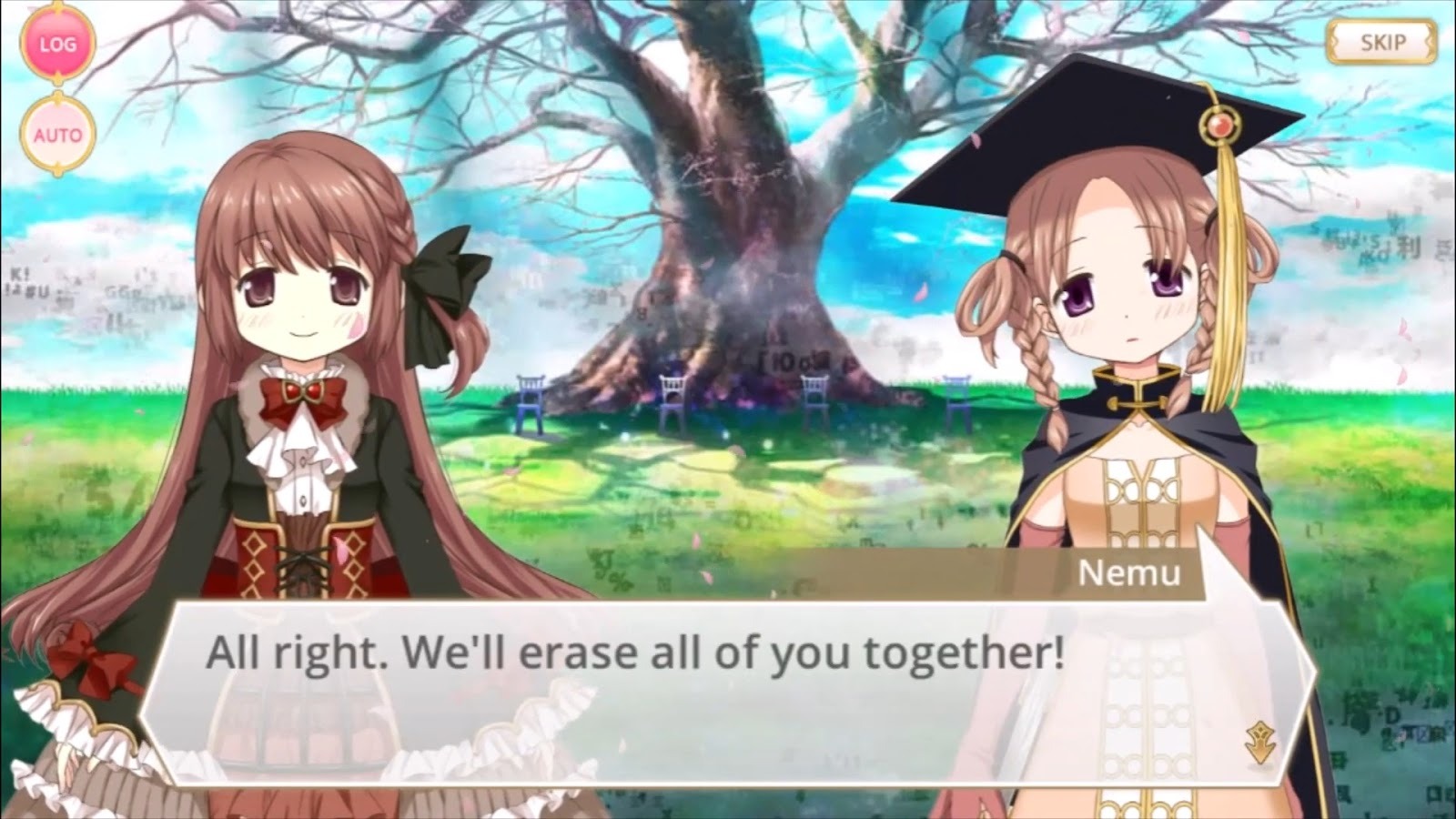 The next time there’s a Magius meeting, this time to decide on a name for their base, Touka is again the one who asks Nemu for her opinion. It’s important to note that Touka is never once hostile, aggressive, or even annoyed when she does this. She considers Nemu’s thoughts and feelings more than anyone. Heck, Nemu would have no way to doubt Touka’s care for her considering their history and the way she acts. Now I get to talk about the relationship between Magius Nemu and Magius Touka. If I start gushing incoherently, I apologize in advance. I covered a bit of Magius Touka’s attitude towards Nemu in the essay dedicated to her, and slightly in this one, but now I want to draw attention to how incredibly sweet Touka can be when it comes to Nemu. Nemu desperately needs that reliability and that love Touka provides, the hope she brings. And Touka is the one person who openly shows her care, attention. Over and over again. Touka considers Nemu an equal. During the main story, as I said in my Magius Touka essay, she shows concern for Nemu’s health and wellbeing when no one else does. This goes beyond her magic-given affliction! I only wish we had more bits and pieces from that era, but as for what we do have… Well, I have to point at Nemu’s swimsuit costume story for the easiest and shortest point of reference. I’d use screenshots, but if I did, I would just end up showing you every single piece of dialogue and expression.