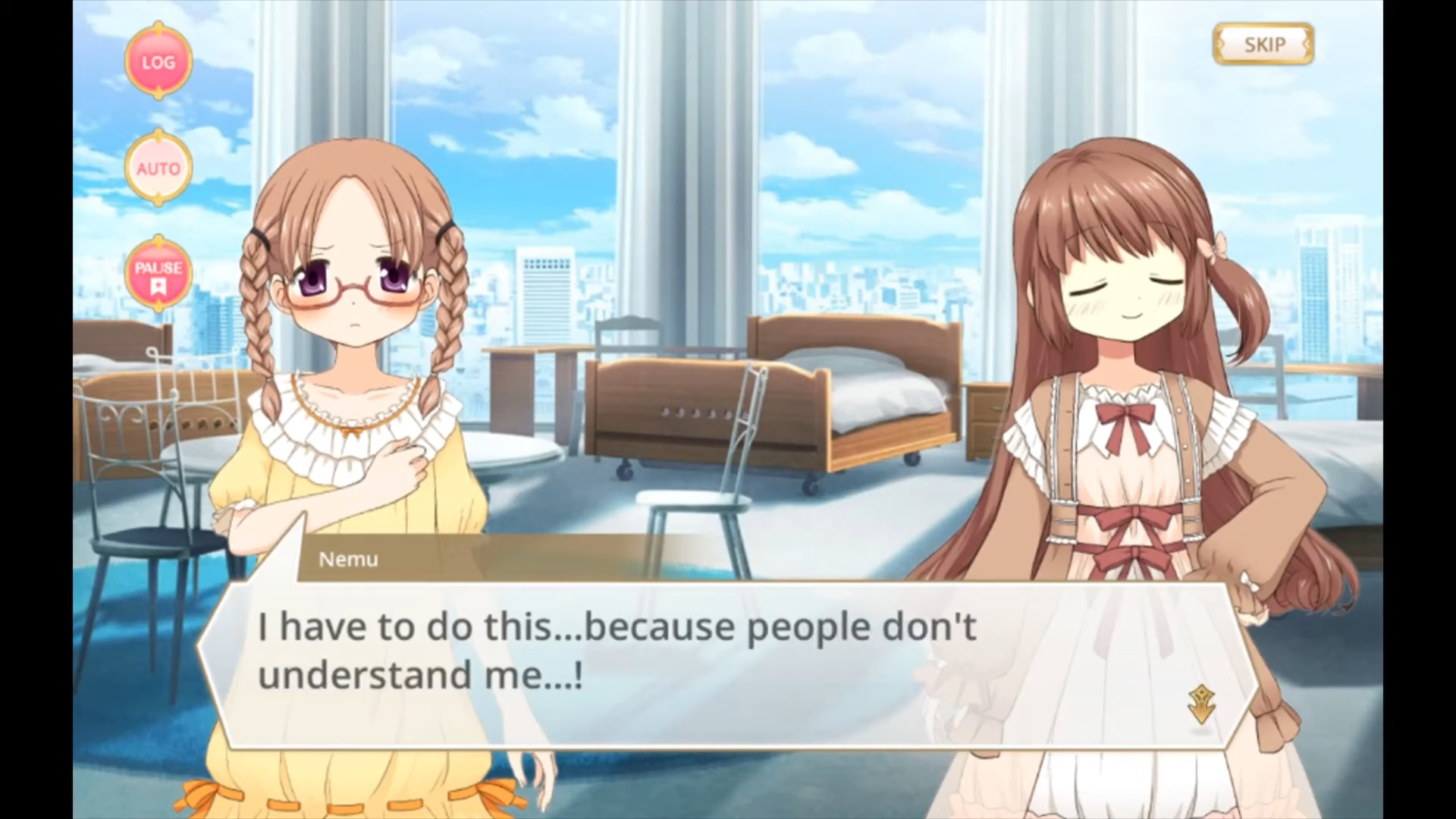 Nemu has taken so much hurt that the part of her that defends her is barely holding on. She is starkly aware and somewhat articulate about why she has resentment and anger towards society, but she doesn’t seem to hold much of it towards her family. I’d say she much more wishes she knew them enough to be angry at them. She’s just tired. She’s used to it, it’s “fine” and not their fault. Nemu also feels like she has a muted anger bubbling underneath her skin, toward herself. Maybe cursing her illness that prevented her from being part of her family. Maybe because she takes on blame and guilt to relieve others, it becomes second nature, and she hates part of herself for it. Her anger still tries to defend her, but enough repression and it kind of shuts up. It’s emotionally draining. Nemu has this tendency to overthink stuff a lot more than Touka, she’s more introspective and philosophical about everything. That is both good and bad, because while reflecting on events is a good thing, the conclusions a child like her may take from it may not be. Her one respite that makes her feel understood and alive? Touka.