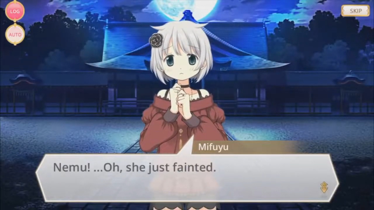 Nemu reminds her that it comes at a cost, and that she’s using up her life for this. Nemu gives in, of course. I will talk about this imminently. First though, the final scene of Mifuyu’s MGS. Where Mifuyu repeats the previous pattern but worse. How exactly is it worse? I’ll let the screenshots speak for themselves here. Nemu and Mifuyu meet at the shrine where the uwasa is going to be released, Nemu does the deed, and faints, then Mifuyu reacts like this: