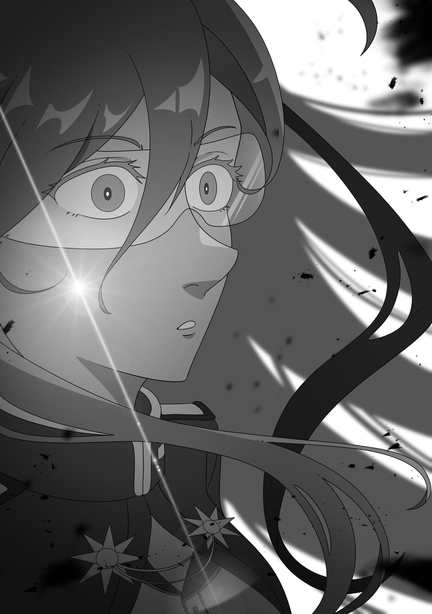 Snowitch was too late. She froze while standing, watching the flames and black smoke contained within the hemi-spherical shield, trapping her beloved and enemy.