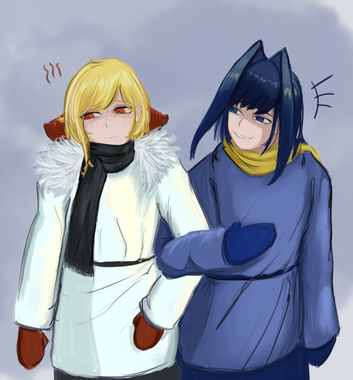 Kaela shuts up quickly, burning red. She can’t even feel the kiss and it’s sending goosebumps across her, curling under her skin in a way even the freezing winds cannot hope to match.