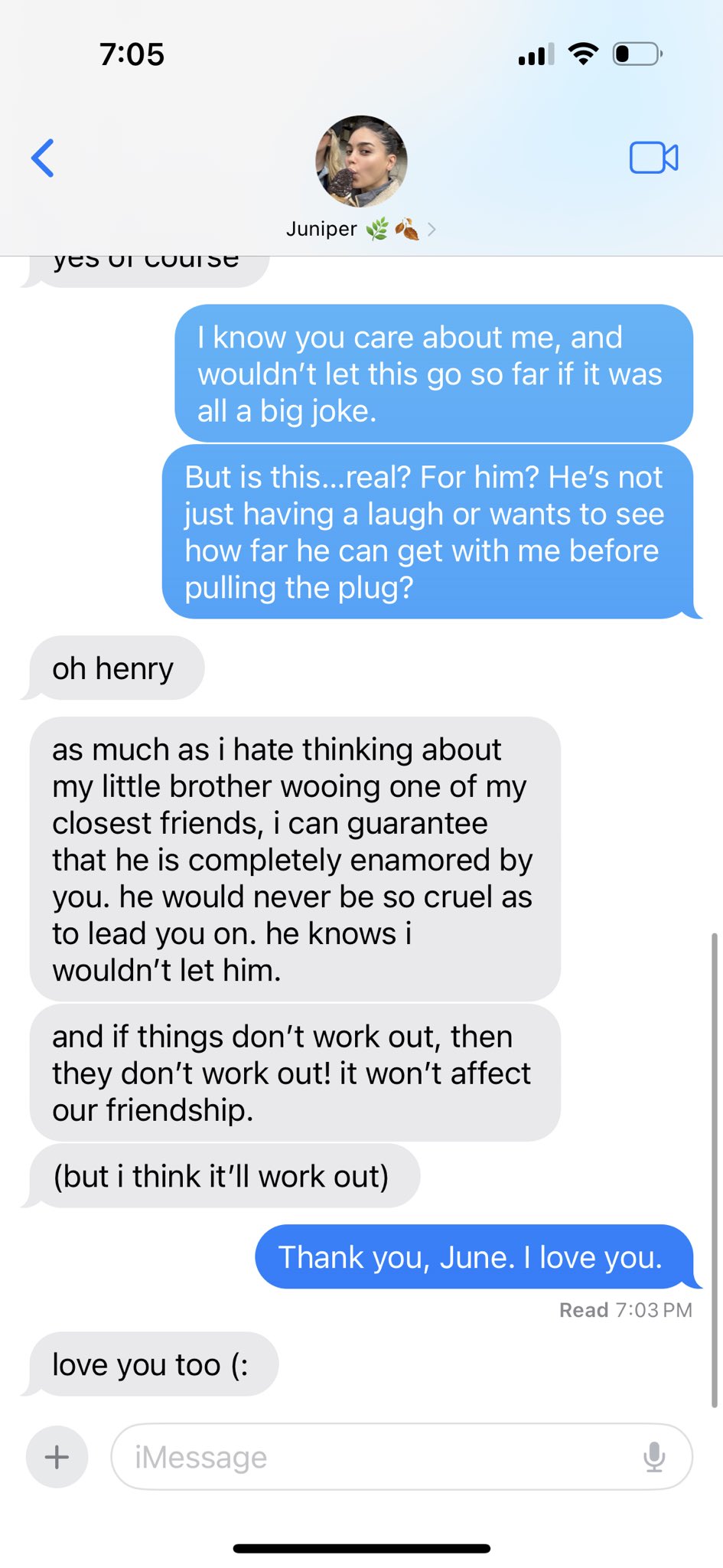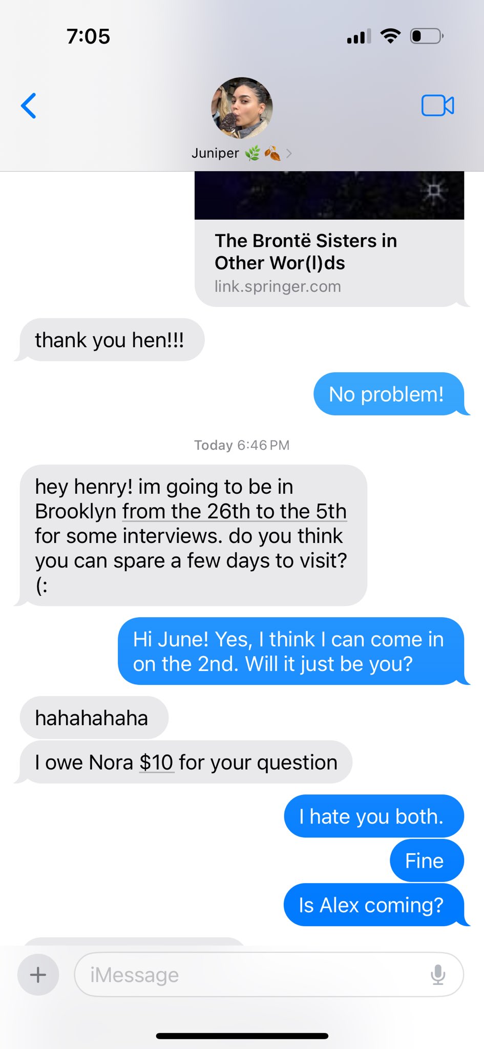 The Claremont-Diaz Siblings use lower caps (June hates her contact name and pic)