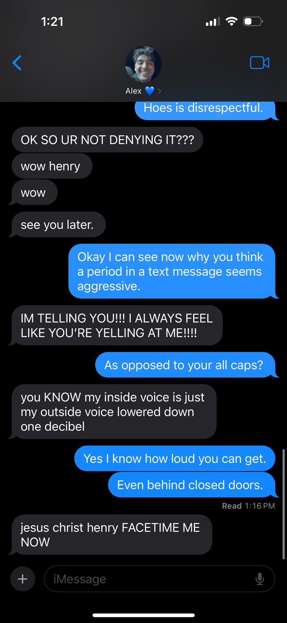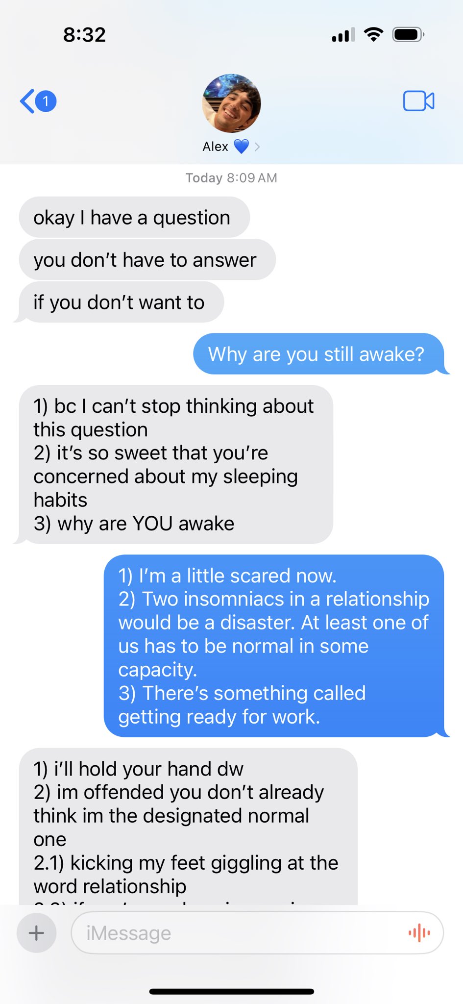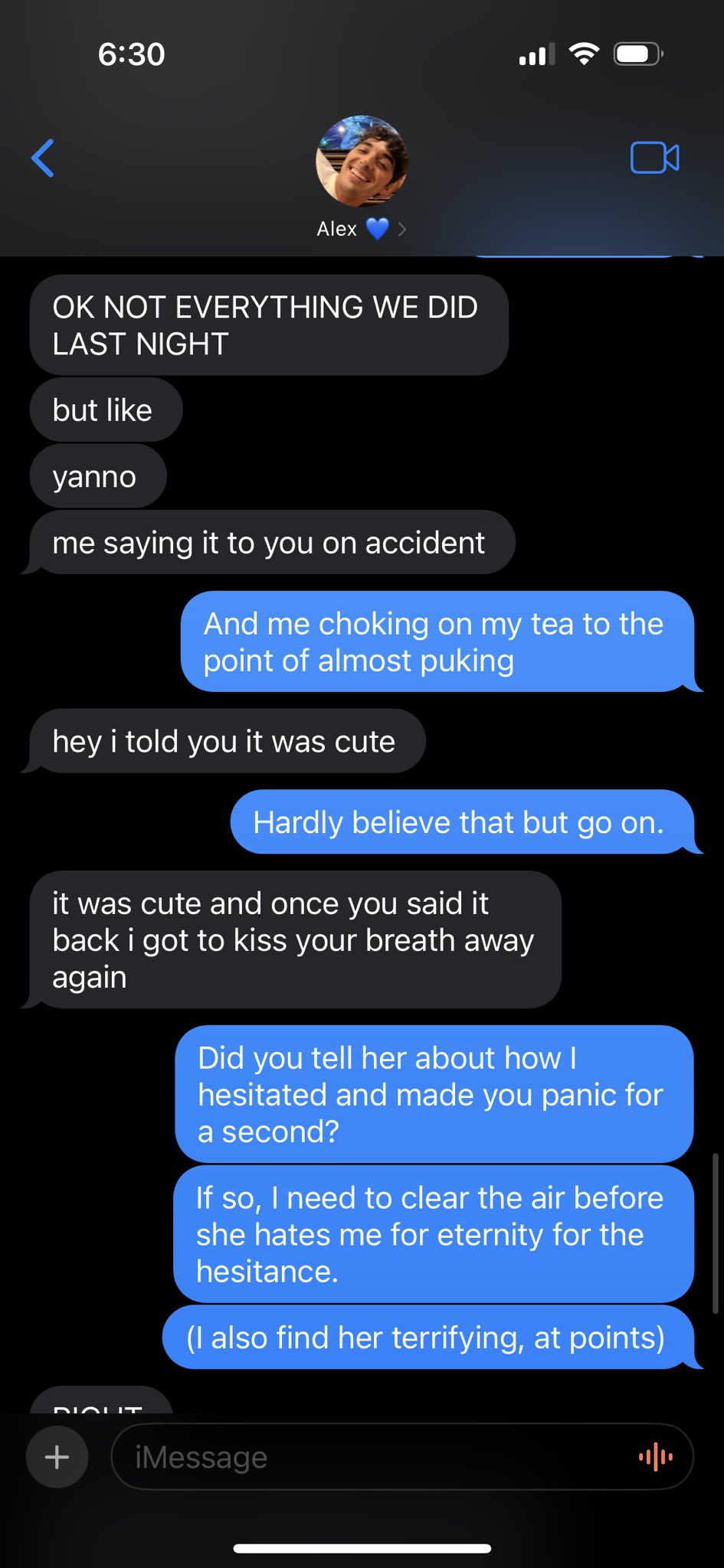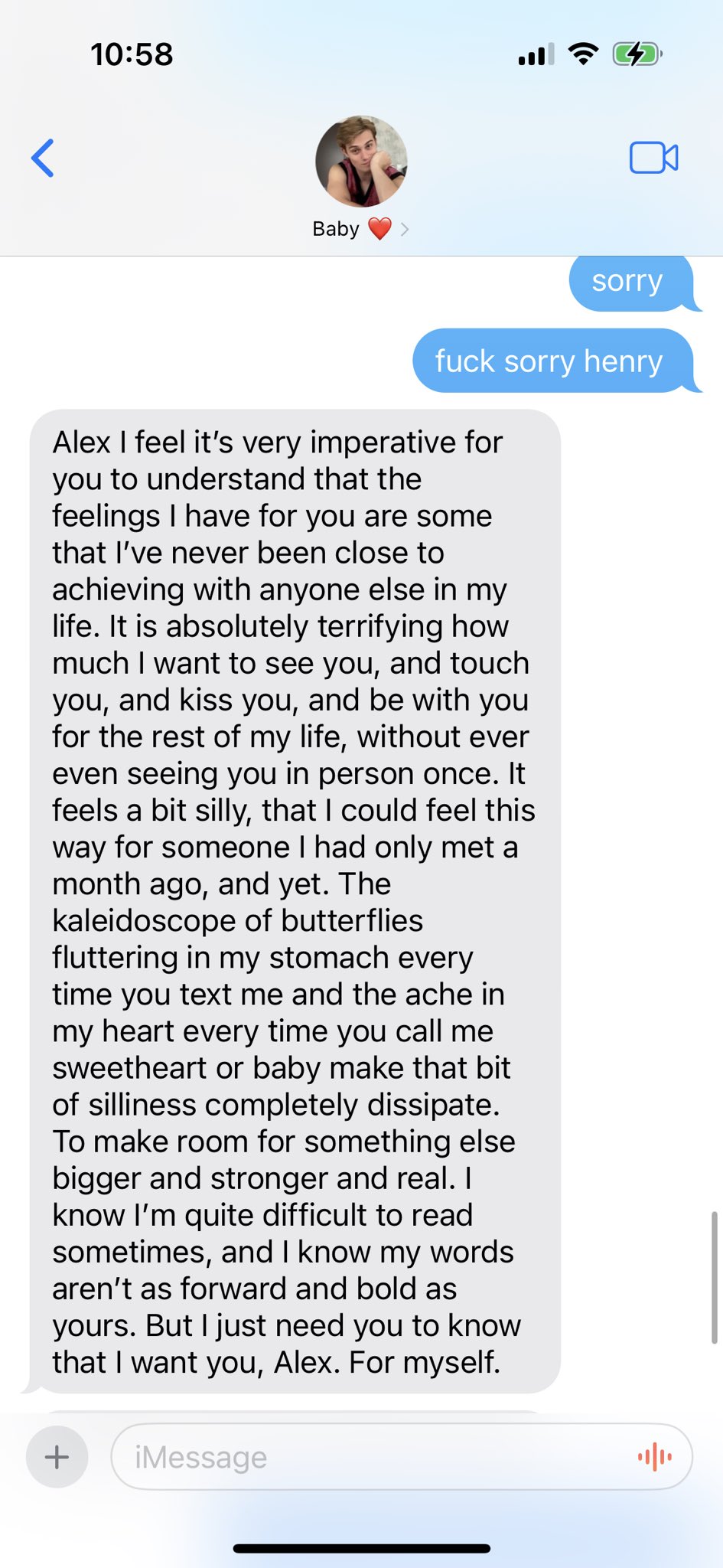 Alex POV (they've been texting nonstop for 6 hours now) (Henry, go to sleep)