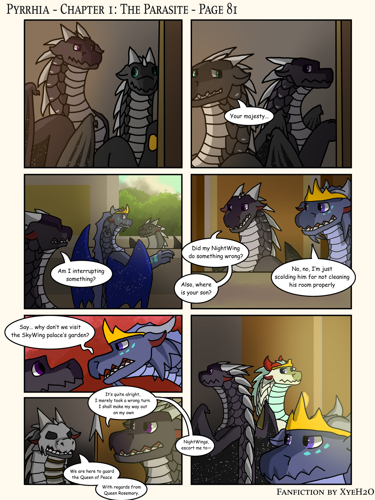 Still, the sting of being reprimanded so publicly burned beneath her scales. Only a few SkyWing guards seemed to notice the queen's sharp words, their expressions unreadable. Hopefully, the gossip wouldn't spread. If it did, it would make her life in the palace even harder.