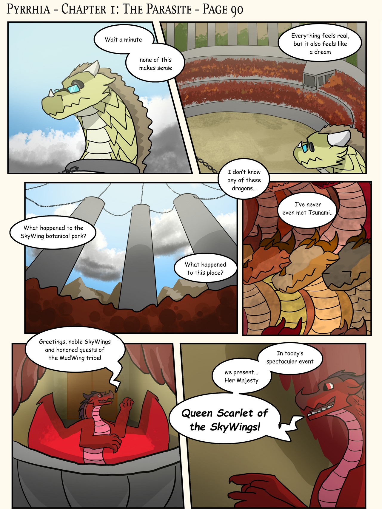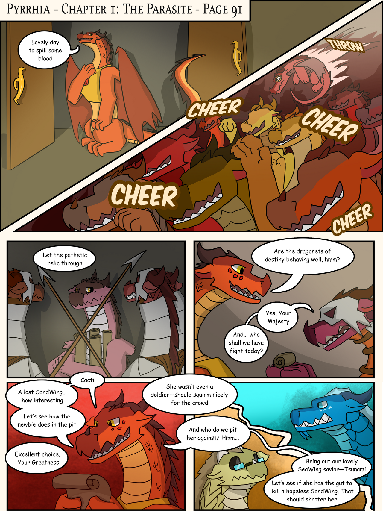 That's not much of an excuse stupid SandWing... Crimson thought, her frustration mounting. Deep down, she wished to tear apart the SandWing's fake, composed smile.