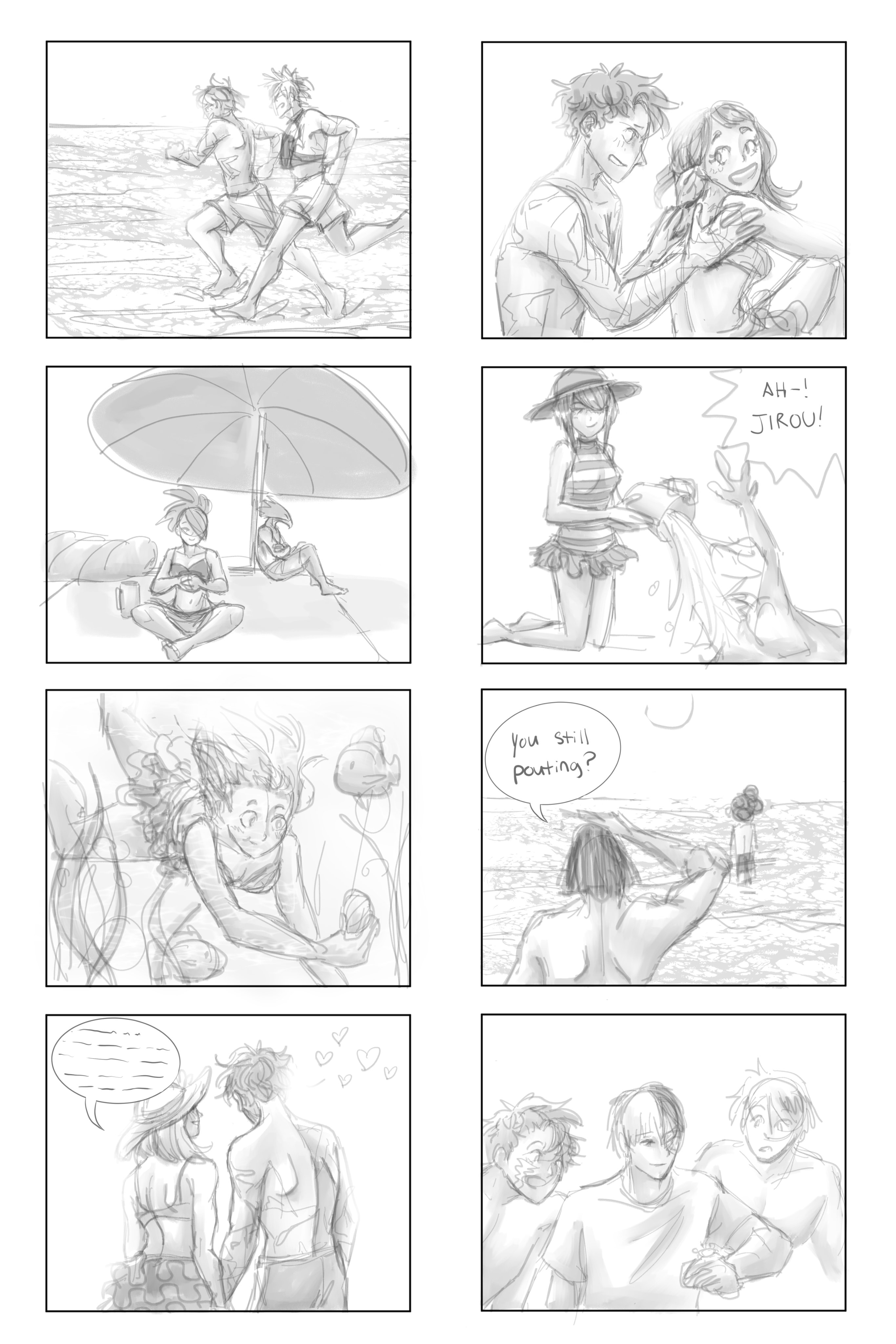 "Deku, Uravity—Please forgive me, my daughter- I-" she sobbed, hands gripped into fists in the sand. "Thank you for helping her when I couldn’t!"