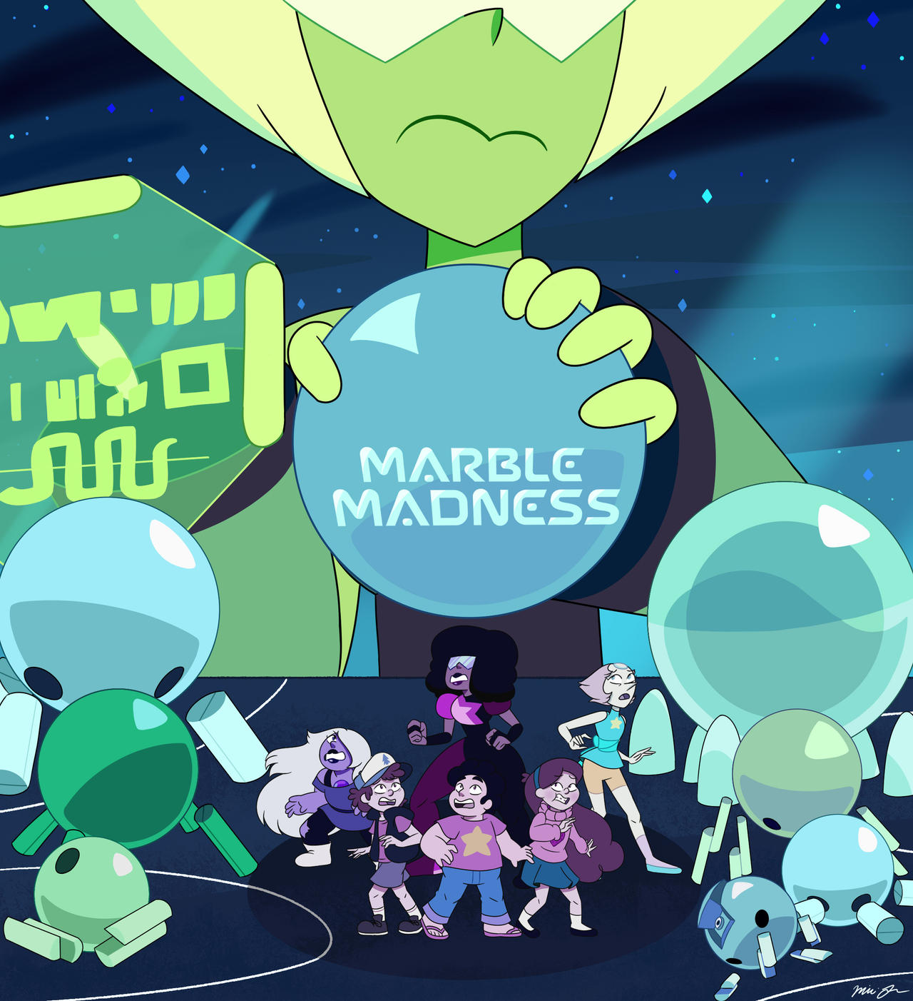 Steven cut himself off with a shudder, opting to distract himself by wiping his hands clean with a rag. Only now did Dipper realize just how solemnly quiet the room was–in no small part because the two of them were alone. “Where’s everyone else?”