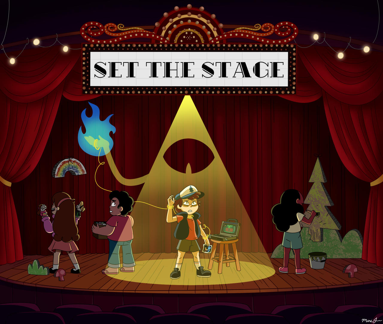 As the last of the fireworks went off, they took the rest of the puppets out with them. One of them happened to land, still smoldering, on the stage right in front of Dipper. He glared down at his puppet and all it represented was nearly enough to make him sick. Maybe that was why he slammed his foot down onto it as hard as he could, just in case Bill was still controlling it. Sure enough, the demon finally seemed to be gone–