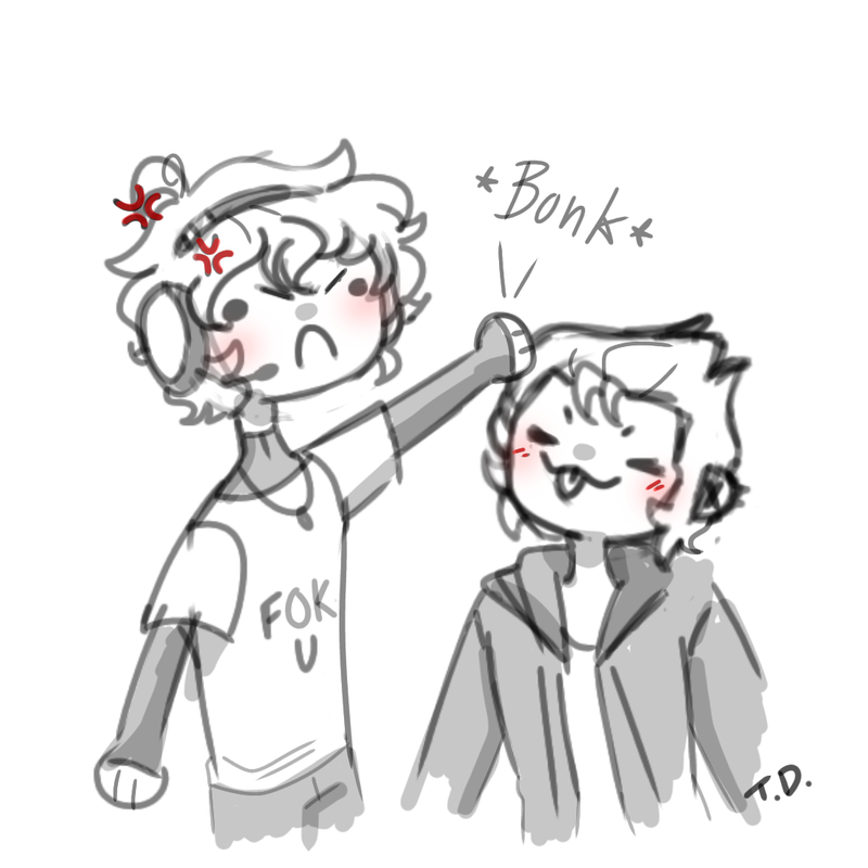 "I said, ye can't be snapping at our friends. I care about them too and yeah, they're assholes. But just be an asshole back. That's what I always do. Plus, ragebating them is hilarious." David said, not once moving away from the soft kisses Brian was placing on his cheeks.