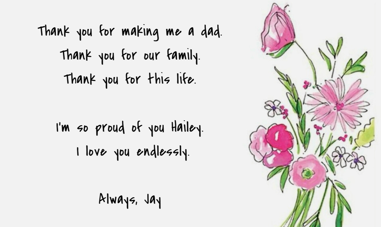 Hailey wakes in her hospital bed to a dozen roses at her right, half pink and half white, and to her left is a bassinet that holds their daughter. Except the bassinet is empty. She sits up as quickly as she can and looks around in a worried daze until her eyes fall on Jay laid back in a recliner in the corner of the room. He has one hand on their daughter's back, the other on her head, and he looks up, flashing her a smile that makes her ache all over.
