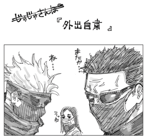 五条悟在从学生口中听说“被诅咒的口罩”的传闻后,某天终于拦下从他的全世界路过的夏油杰,半开玩笑地问他,是在跟着冥冥发疫情财,还是准备通过疫情筛选促进人类进化。