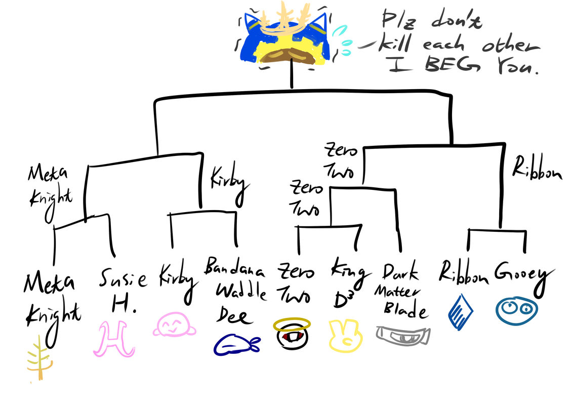 But when they arrived, Kirby spotted Zero and Zero Two lounging in the corner, their eyes fixed on him with an emotionless gaze. Oh no… what if Zero started teasing Void? And would Zero Two even help after… that disaster one month ago? Kirby nervously twirled his parasol, hoping for the best.