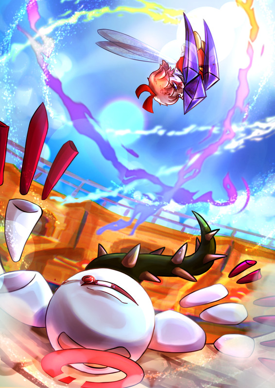 "Ha! That sounds even better!" Zero crackled, while Kirby pouted in frustration. Meanwhile, Zero Two stretched out his white wings, the dark red feathers flaring slightly, as if shielding Void from the childish battle between Zero and Kirby.
