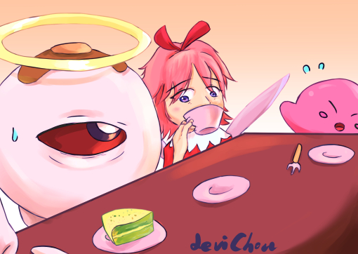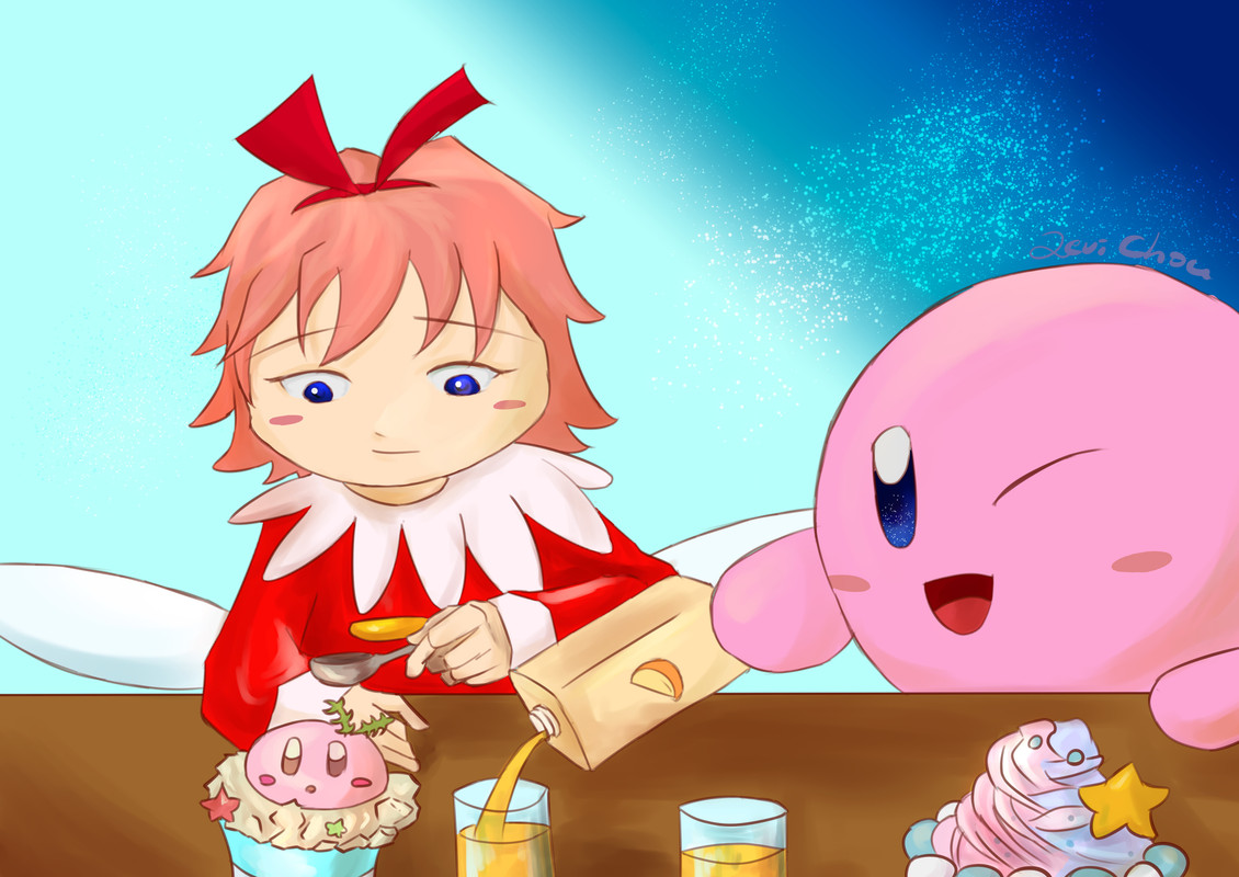 "Poyo!" Just get to the point already, Kirby thought, forcing a smile as Ribbon eyed him curiously from the side.