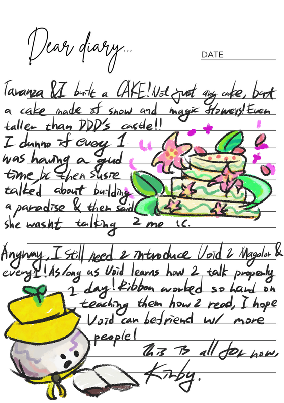 "Sure thing!" Kirby replied cheerfully, though his mind was already wandering to a future scene where Void finally learned to speak properly, albeit still with their youthful innocence.