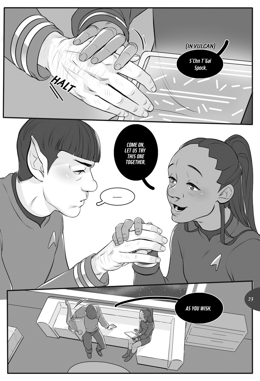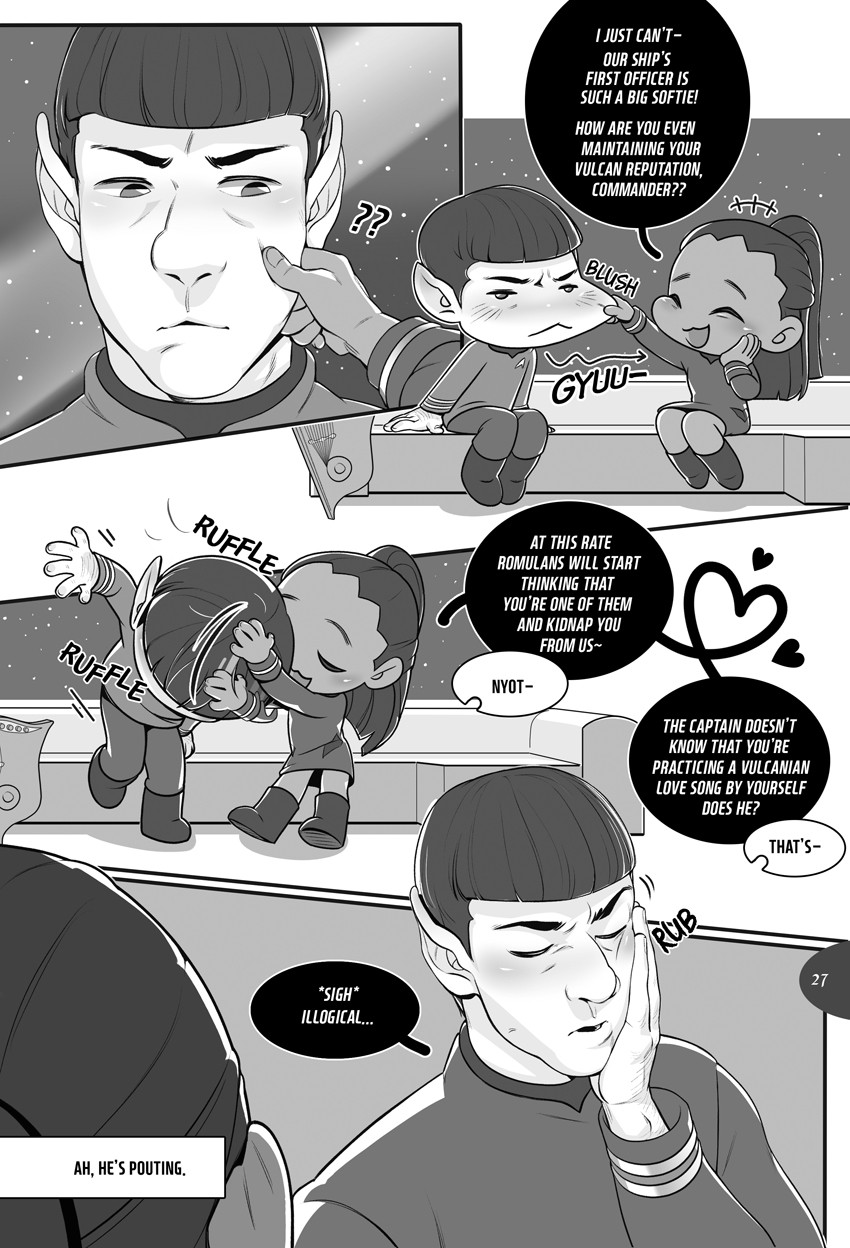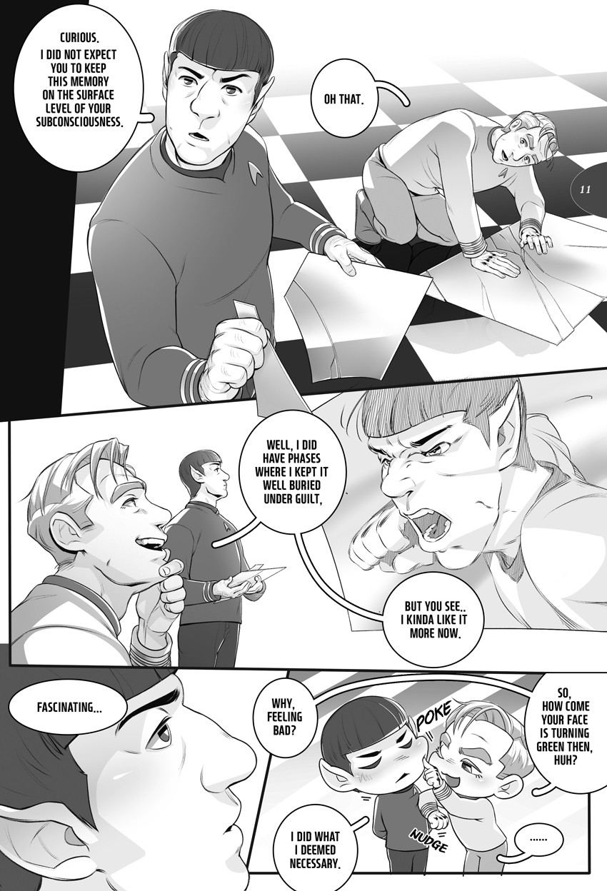 Check(ing)mate - Jim seeks out Spock during his depressive episode, Spock offers help by mind melding.