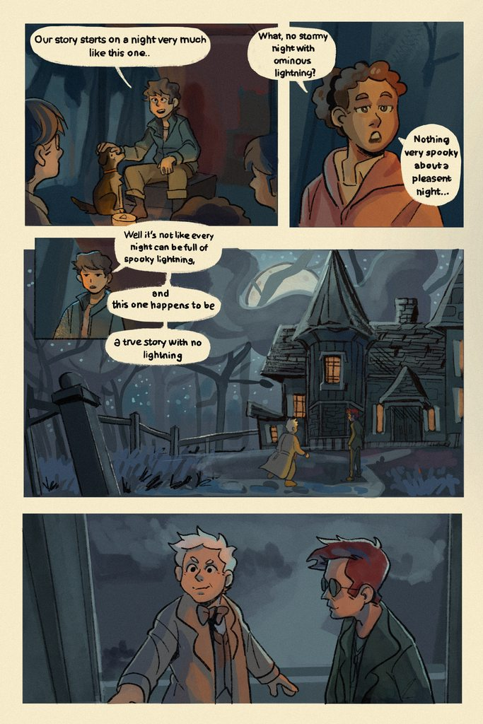 “Oh hush,” Aziraphale tuts, raising his hand again, “It just needs a little change in atmosphere… Let there be light.”