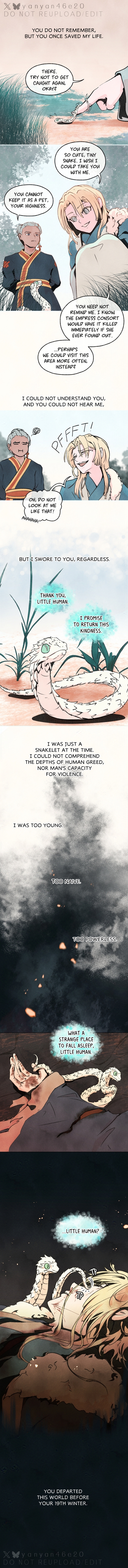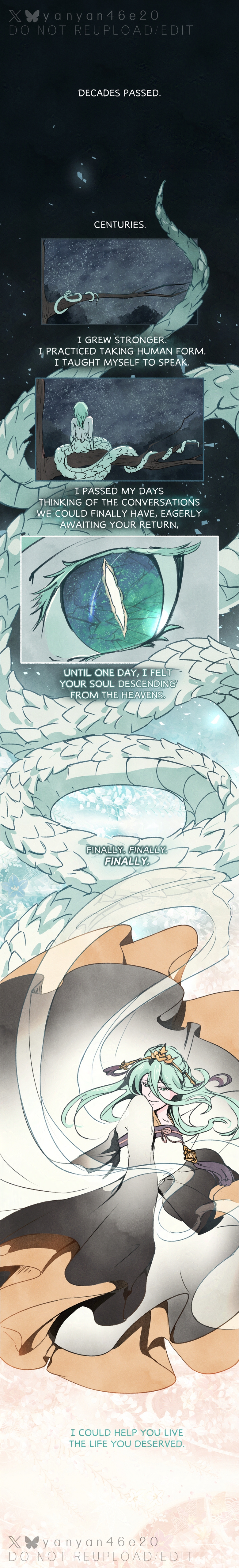 This is based off of the Chinese romance legend "The Legend of the White Snake," specifically the version in which the boy saves the snake in a previous lifetime, which prompts her search for him after his rebirth. The story is reworked a bit to fit Dimitri and to add a little more angst.