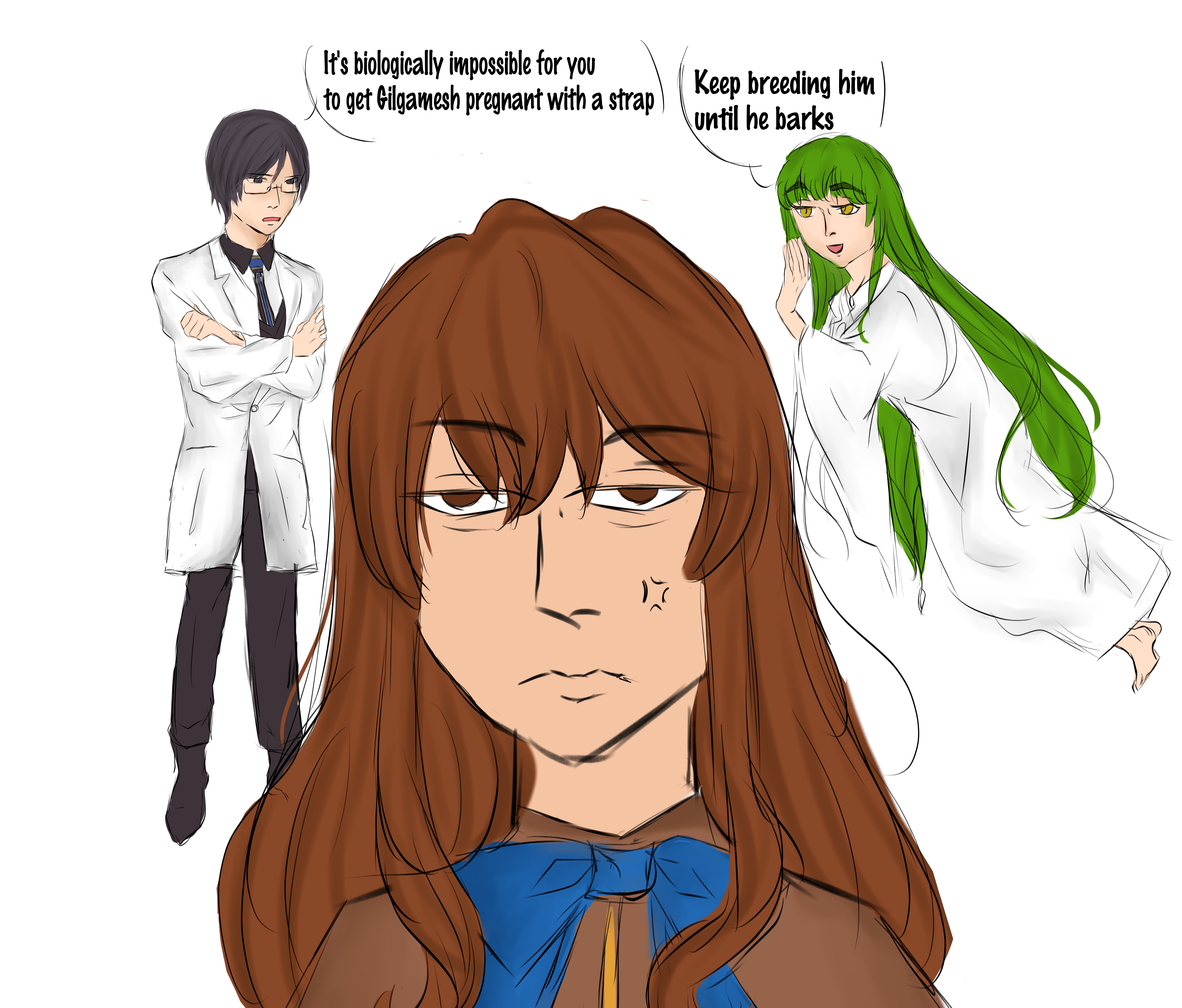 Enkidu and Twice give Hakuno mixed advice over how she she should approach her sex life with Gilgamesh.