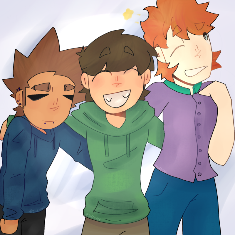 "I don't care." Tom replied, looking over and placing his arm around his friend's shoulder. Edd's smile fell and he looked down at his feet. Matt, who stood to the right of Edd, seemed to remember something and turned to look at Tom. "Hey! At least that bad thing didn't happen to you." Tom gasped and stopped, his lips pulling into a smile. "Hey, that's right!"