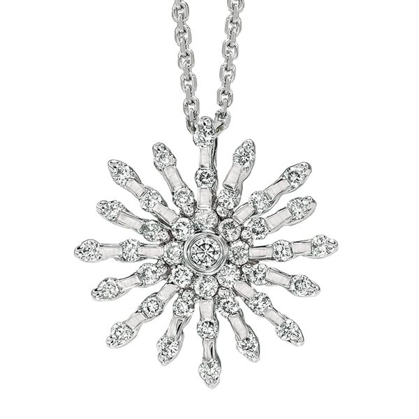 It’s a little star, a miniature Sun made of silver and zircons. The chain is a lot more delicate than the one she had for holding Bones’ ring and the length of it it’s just the right one for it to hang above her cleavage.