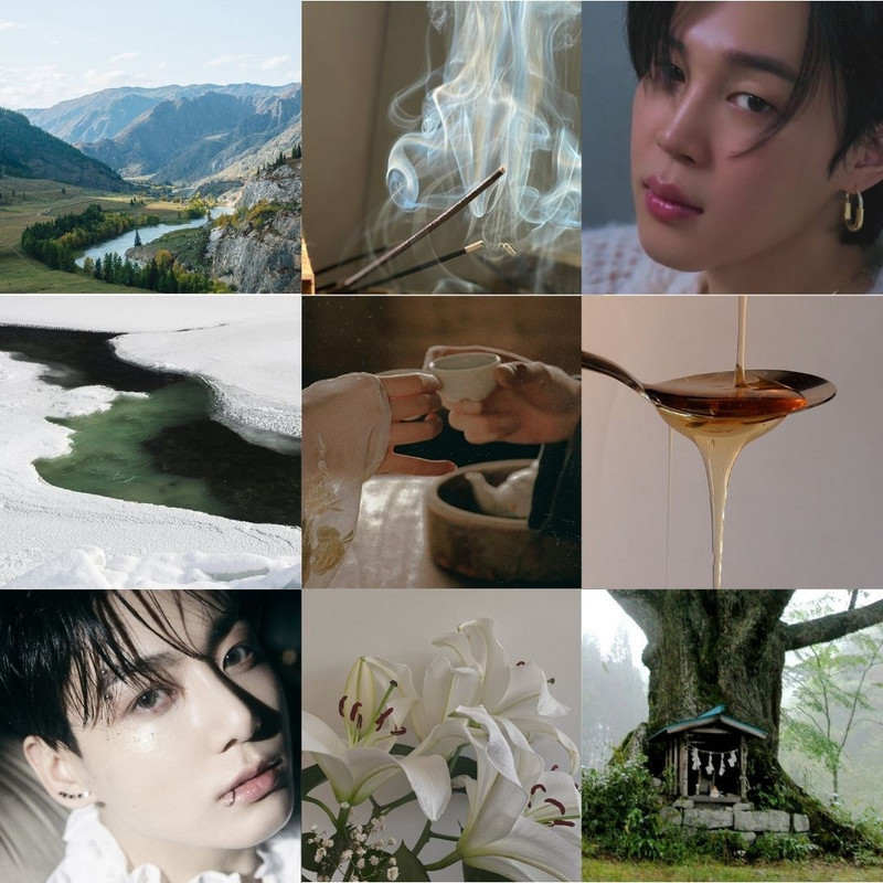 Now, he stands on the frozen river as the pale light of his lantern shines upon the mirror surface. With alert eyes and tired knees, Jimin walks; his wet silver hair falls upon his face and his gray eyes are dimmed. Up at a distance Jimin thinks he sees the snowy peaks and that is where he wants to go : where the snow is colder but the cold only ensures safety and warmer fires. The first brush of snow is light on Jimin's cheek, like a brush stroke on a blank canvas but soon it snows like specks of rice falling from the sky and Jimin’s tired eyes dream of rice balls by the hearth. The light inside the glass of the lantern flickers, the light in Jimin’s dim but a little more . Just a little more. Till the mountains seem closer.