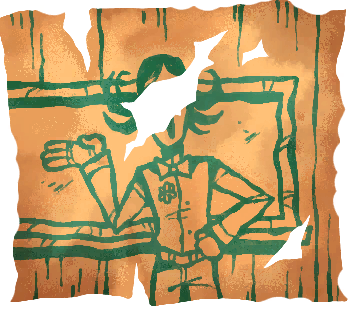 “Alright, git with you. Sure as sure’s sure you’re down to cause some trouble with Fischer Baghley. . . . but one last thing before you scamper?” Holding the hood of the coat at the same spot in the air, her face moves in closer, closer, to the ear inside that hood.