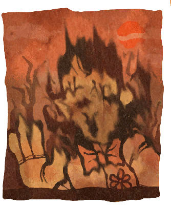 The centerpiece of the festivities does not catch on fire part way through being woven this year; not that it would reach much of a blaze. They call it a husk; woven of bare stripped stalks and stems, thin dried branches. A tower of what is left after the harvest to creak in the wind. At the far edge of autumn the husk is burned; a bonfire on the brink of winter. Gail herself is taller than the husk this year. The shape it is made into differs across years, and for reasons she had somehow not quite picked up on, is in the vague shape of a bird. The children work together on it throughout the day and singing begins in the afternoon.