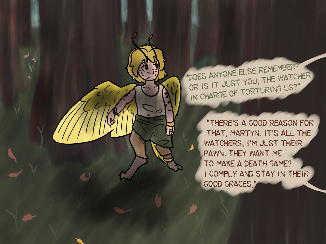 “Sorry ‘bout that,” the person said. They sounded less than eager to apologize. Looking up, Martyn saw a butterfly-like Deviant about his own age, dressed in what was probably formal Mezalean attire. As Martyn stared up at the Mezalean, they began to speak again.