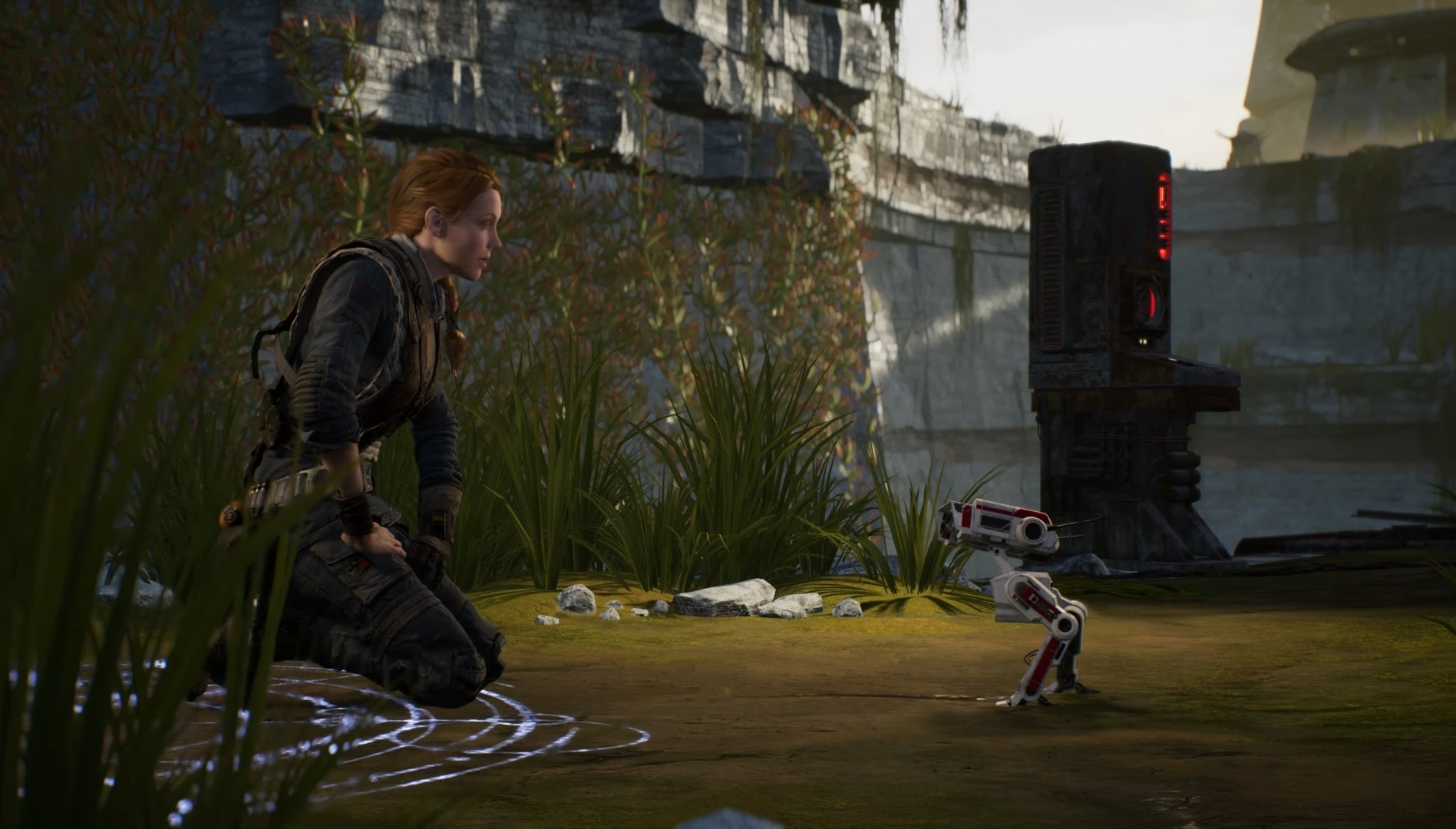 BD-1 asked if she was okay, for which she gave a hesitant nod.