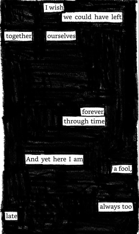A blackout poem using text from This Is How You Lose the Time War by Amal El-Mohtar and Max Gladstone