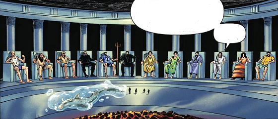The gods who were members of the Olympian council, along with Hestia and Hades, were discussing the existence of the Son of Poseidon who had recovered the thunderbolt from Zeus and proved his innocence, along with that of his father as soon as he stole it.