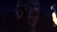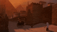 The projection then changed to show several horsemen riding through the desert during the cold night, using only torches to see the road, for a few seconds before the narrative returned.