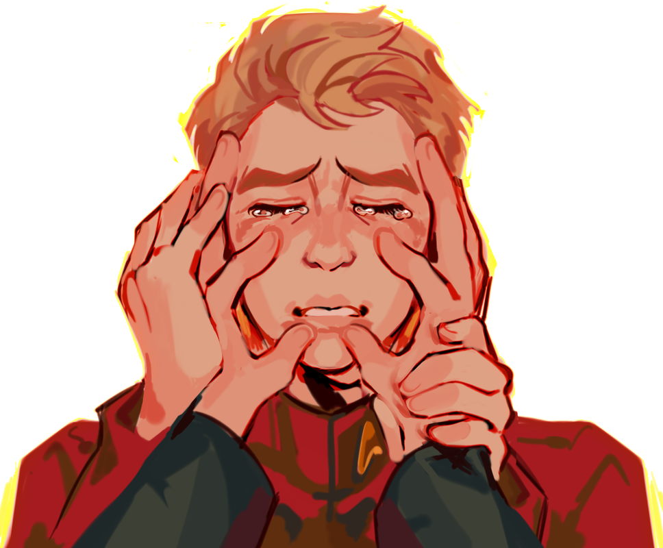 Jim tried not to be bothered by the possibilities, tried to treat them how the Jim of five years ago would. He took note of how exhausted they looked: bloodshot eyes and dark bags. Messy hair. Bones's shirt was on backwards, and Pike was wearing a shirt with an egg pun on it with his uniform pants.