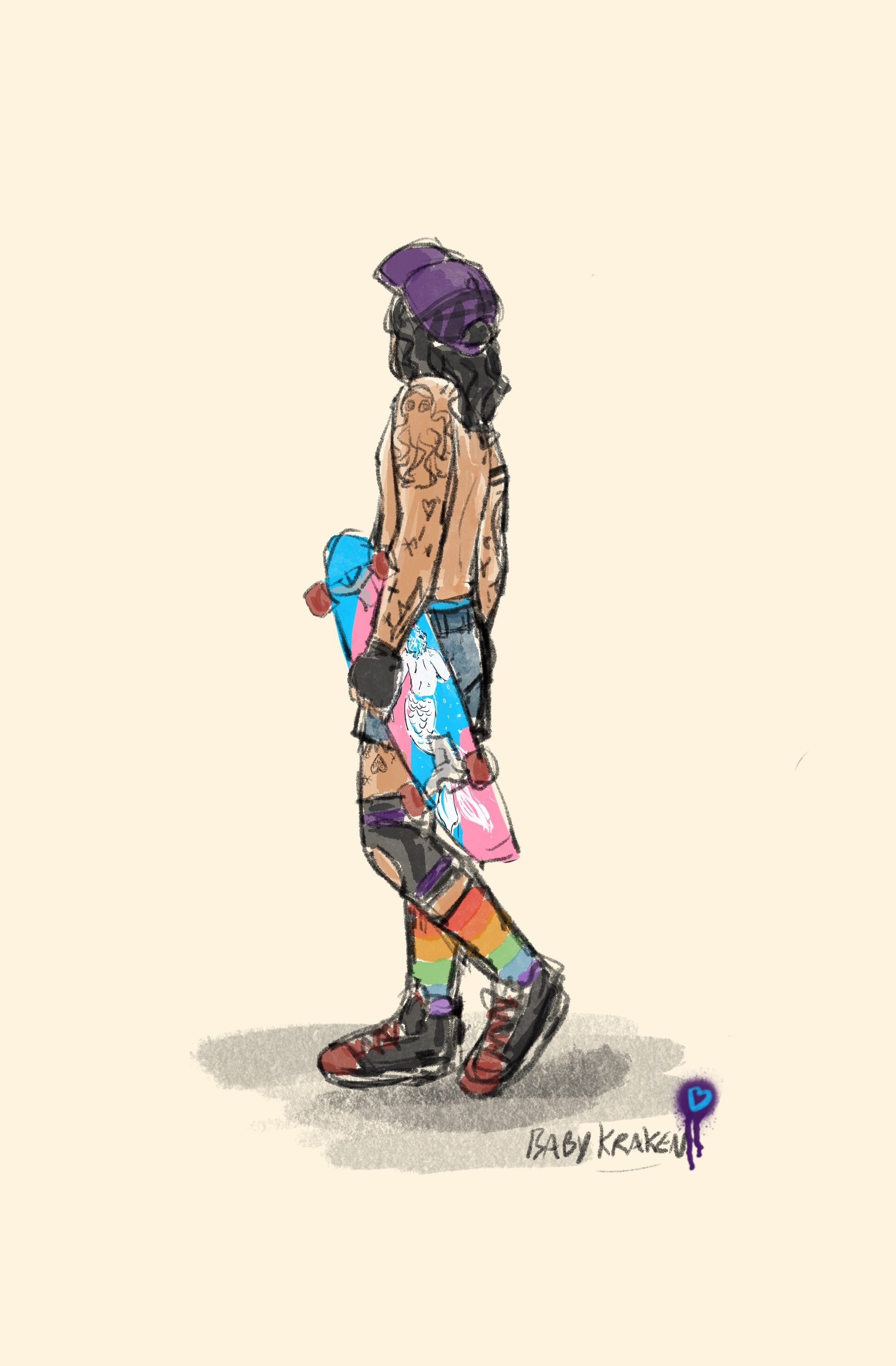 edit: now with perfect art from BK as per uzhe giving the best visual for his shorts and socks. please also have a good look at his tattoos. and his extra special board!!! we love you trans crew 🩵🤍🩷