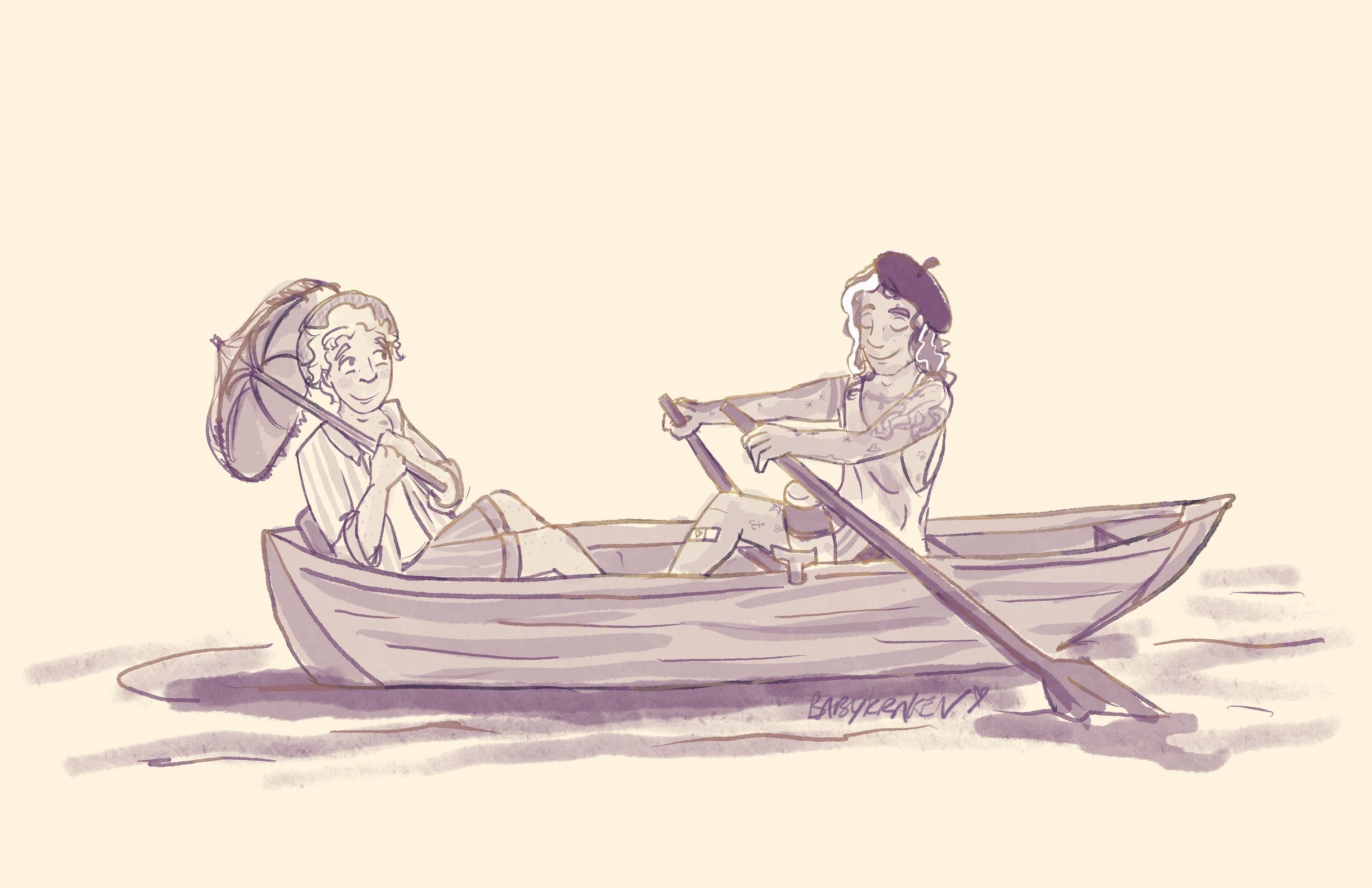 After having a picnic beside the Grand Canal of Versailles, they decided to rent a rowboat out on the water. Ed was very insistent that he should be the one to row; all Stede had to do was sit there and look pretty with his parasol and enjoy the view, Ed would take care of the rest.