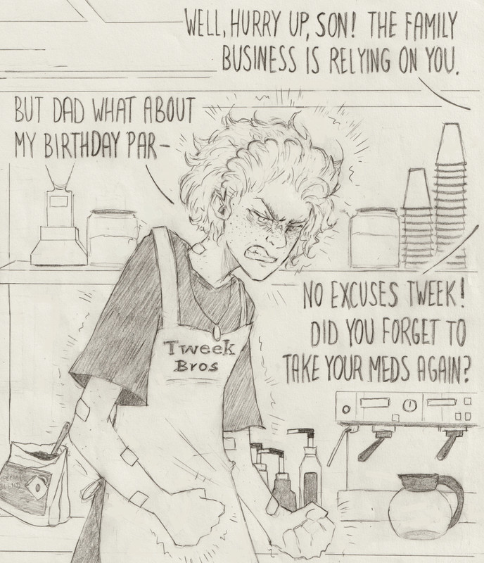 Fanart for @Eggs1682527 AU on twitter - Tweek 0.001 seconds before punching Richard straight in the face on his 17th birthday