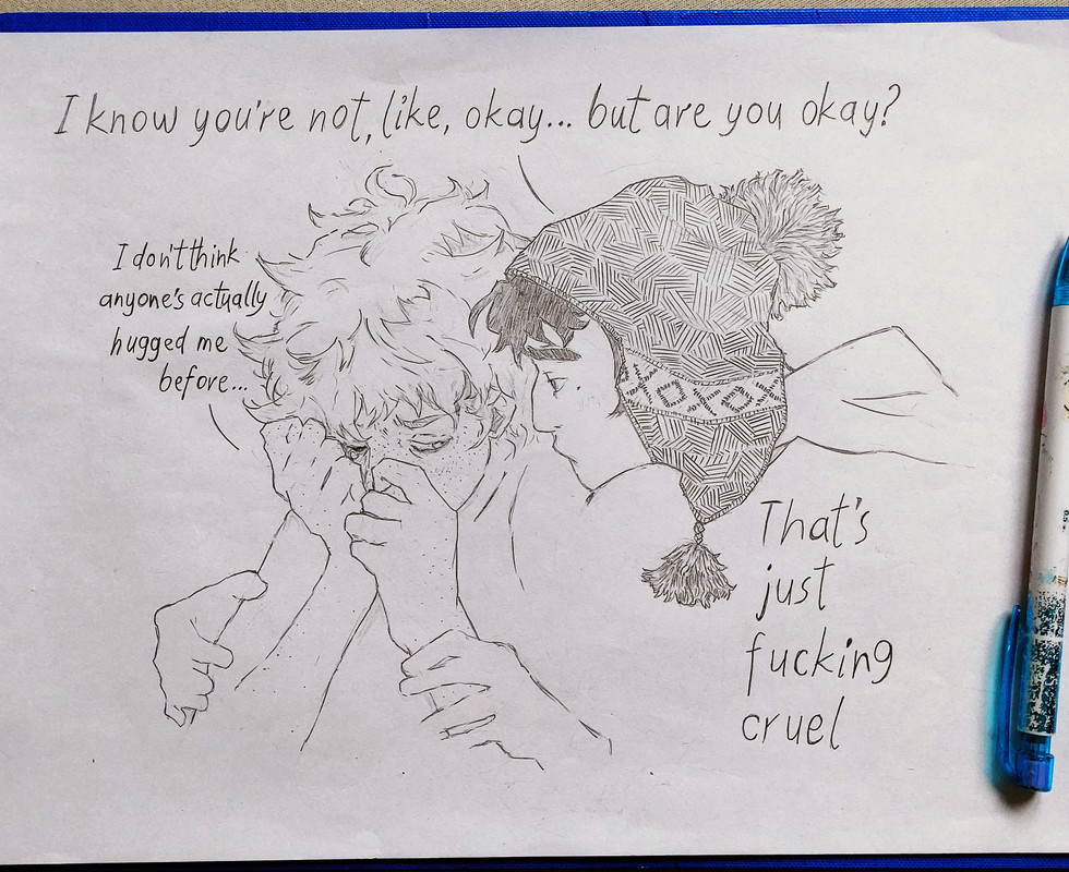 This is just a quick sketch drawn to celebrate the release of “Arsonist's Lullabye” new chapter cause I'm so happy that this fic is back.