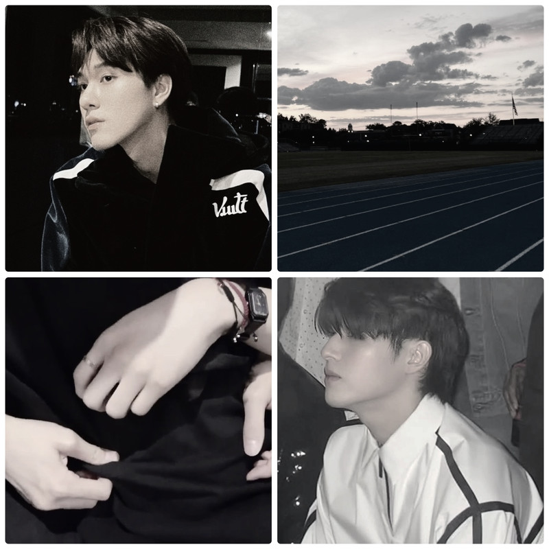 The campus is asleep. The track glows under the cheap yellow floodlights. Saint sits on the edge of the field, hoodie pulled over his head, knees hugged to his chest. He’s staring up at the sky when Shin finds him.