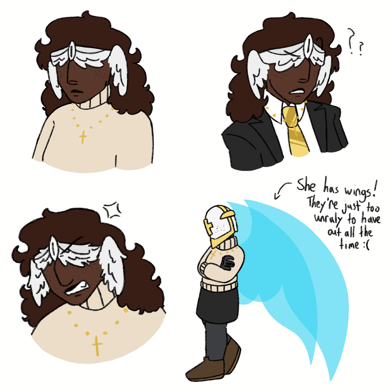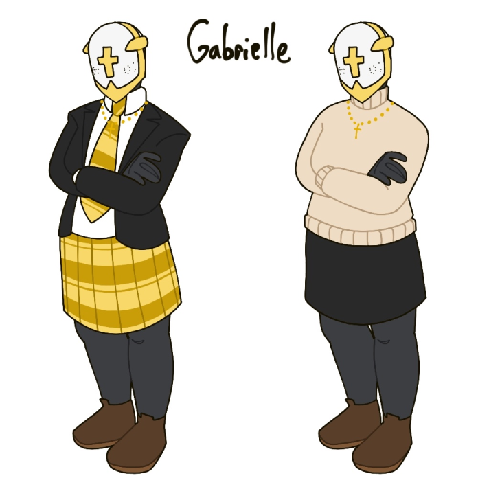 this isn't strictly canon just more like a suggestion, if you guys wanna make your own designs for what Gabrielle might look like under the helmet that's totally fine :3 it's just my idea