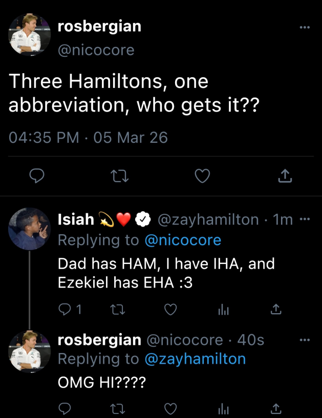 The twins wasted no time and walked over, sitting down and grinning. “For Lewis to be driving a sports car, you two seem rather late.” Ezekiel sighed, “Traffic to get to the paddock was a nightmare, and we would've been on time had he,” the teen pointed at Isiah, “gotten dressed on time.” Zay, in response, rolled his eyes and chuckled. “We still made it here, didn't we? Now– where’s my team kit!”