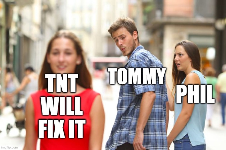 Tommy ducked under a low-hanging fire exit, jumped on a dumpster and over a wall, and scoffed, “What, flattered that they hate me more?” before catching himself and pushing the memory of Tubbo away.