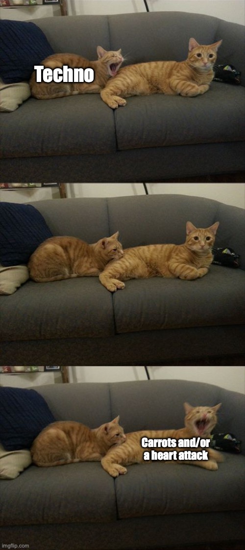 He yawned. When his eyes opened back up, Techno was standing right next to him, ears twitching, gaze intense.