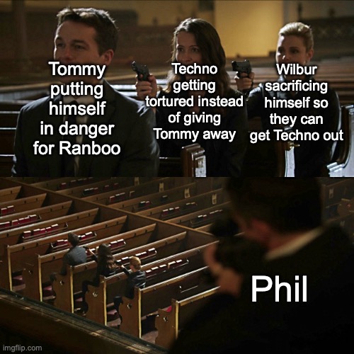 Techno put his hands over Pepito’s ears, glaring at Tommy, but he had to lean away when Phil extended his wings along the back of the small couch.