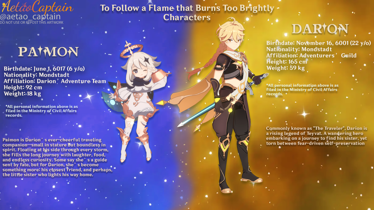 This is my very first fanfic—and honestly, it’s the project of my life. To Follow a Flame that Burns Too Brightly is the first out of four installations of what I call the AeTaoverse, featuring a rewrite of Hu Tao's story quest.