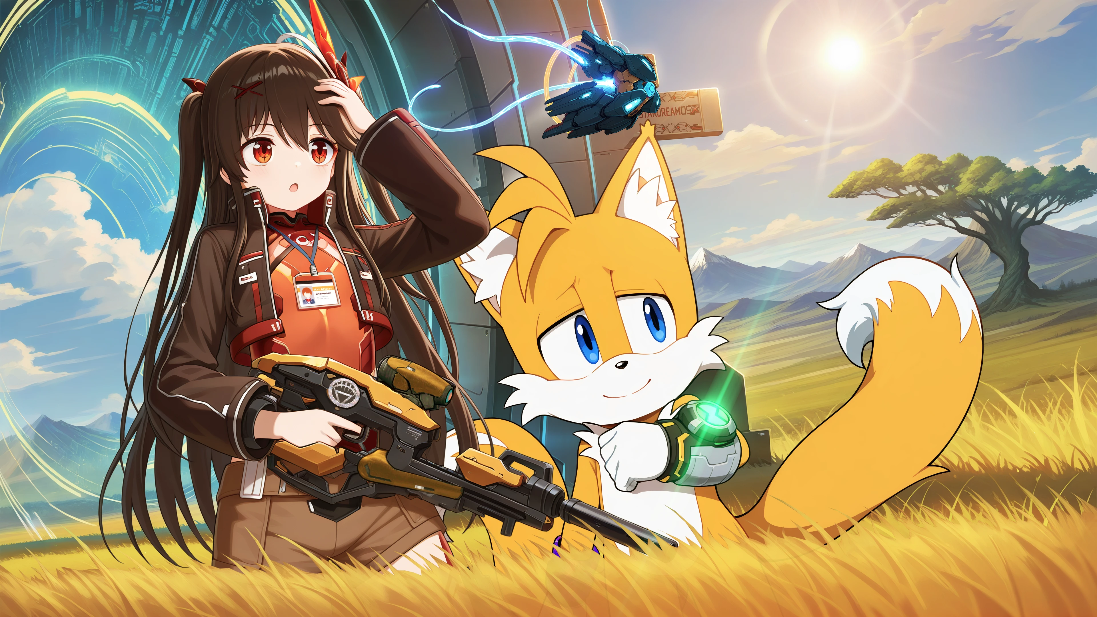 Tails nodded, walking forward with Sonic. He quickly considered several explanations to disguise their identities. But when the young girl examining the wheat stalks turned around, he froze, instantly forgetting everything he had planned to say.