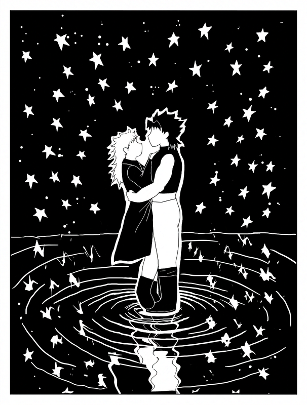 Slowly, they slide to a stop in the centre of the pond. The ripples of their movement slowly subside, until the glass surface of the water reflects the galaxies above as perfectly as a mirror. They are surrounded by the stars.