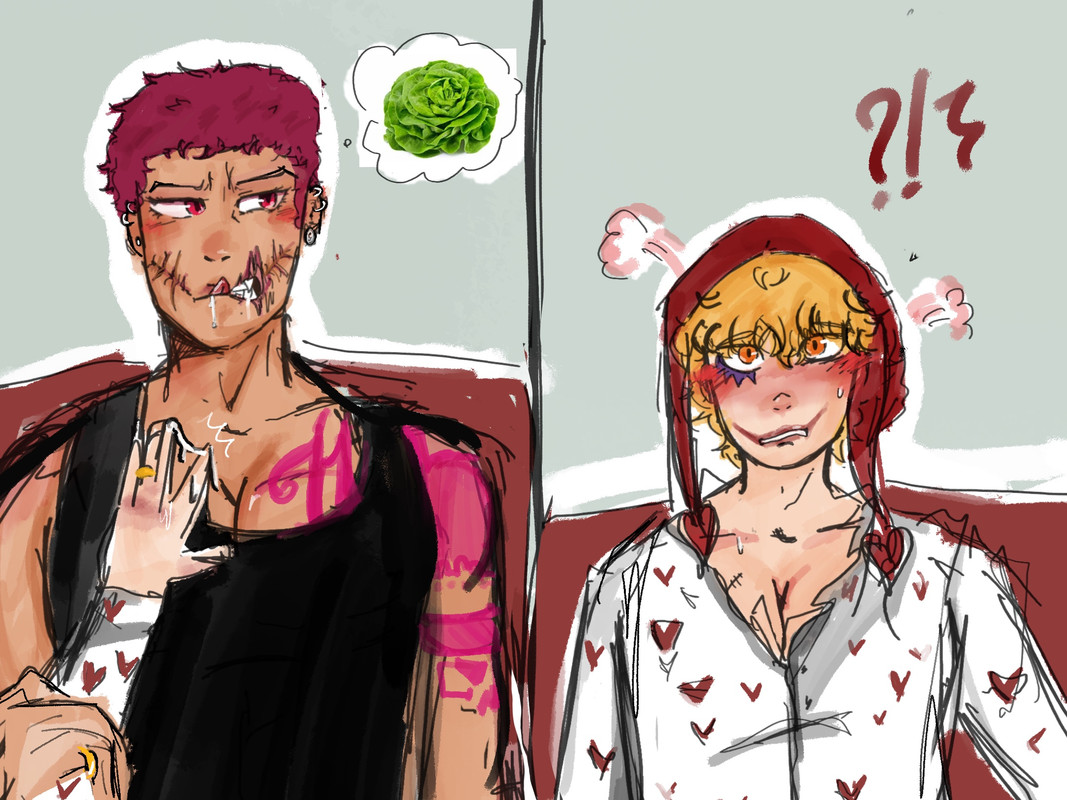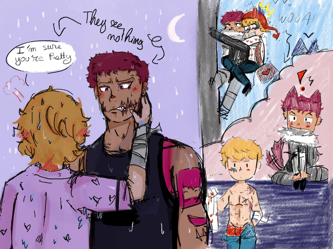 Trafalgar turned bright red, Kidd and Luffy mocking him behind his back, panic overtaking the future surgeon.