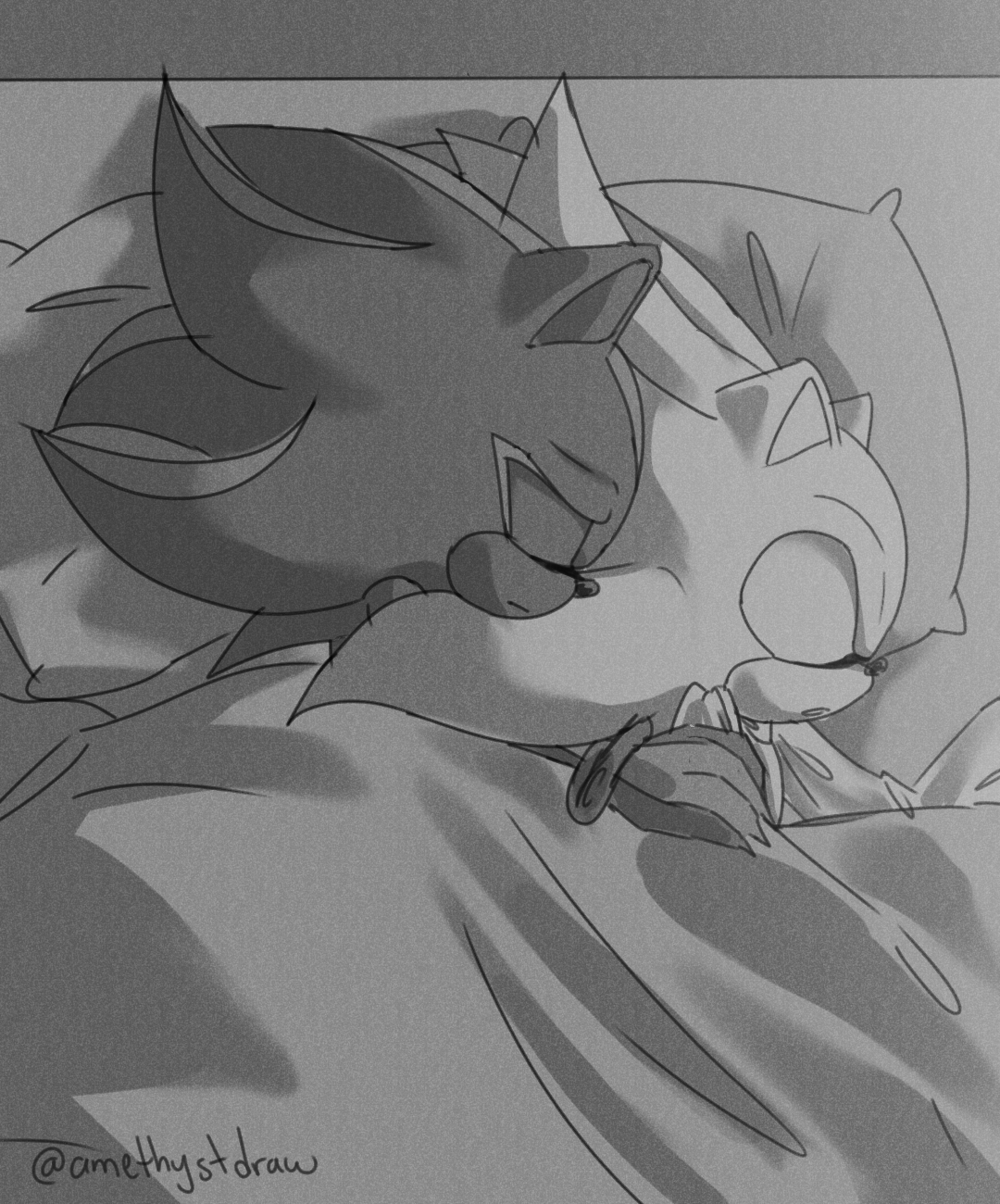 “Oh, my love, I thought you’d be asleep by now. You’ve never been fond of staying up late,” Sonic said as he closed the door behind him and pulled down the hood from his shoulders.