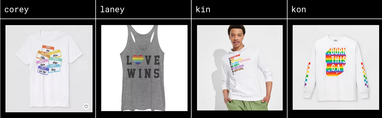 corey comes back on screen with the most awful target pride merch and its just like ugghhh
